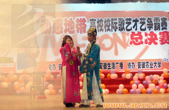 决赛当晚,新华电脑专修学院的百余名同学在学院老师的带领下,来到现场,为《大话梁祝》的表演者姜珊珊、蒋伟伟、孙燕和杨庆加油鼓劲,同时,他们也为其它选手的出色表演而喝彩,决赛现场气氛热烈,精彩纷呈:小品《车站》惟妙惟肖;Glass组合歌艺不俗;《心碎了无痕》重温经典老歌;一曲《曹操》再现周董风范;《我要飞》是对心中梦想的最好诠释;歌曲《刺鸟》高亢明亮;由电影衍生而来的小品《天下无贼》令人捧腹;《大话梁祝》以今说古,以古喻今……选手们的高水平发挥,让现场3000多名各校学生如痴如醉,掌声贯穿决赛始终。