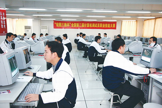 全国第二届计算机调试员职业技能大赛紧张激励的比赛现场