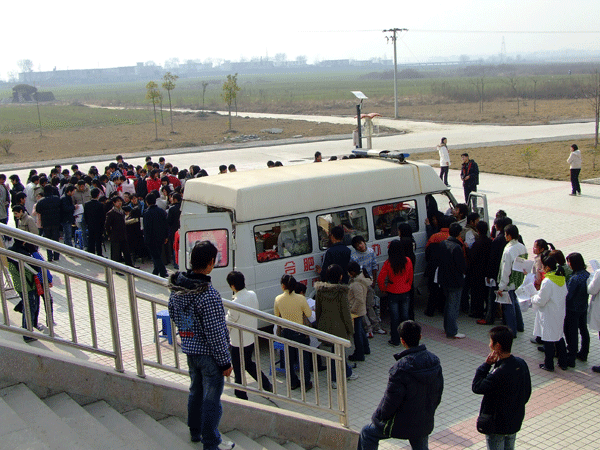 活动现扬,人头攒动,体检验血处排起了长队,同学们献血的热情感染了更多的人加入到献血的行列中。为了缓解医疗人员的压力,学生会成员积极加入到服务的行列中去,他们配合医生做好引导、表格发放、发放验血证等工作,为同学们细心的解答疑问,帮助同学更有序、更快捷的完成献血过程,努力为义务献血的同学营造舒适、愉悦的献血环境,解除他们的后顾之忧。同时,他们自己也踊跃的加入到献血者的队伍中去,起到了模范带头作用。