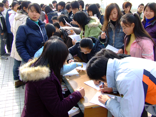 同学们认真填写献血表格
