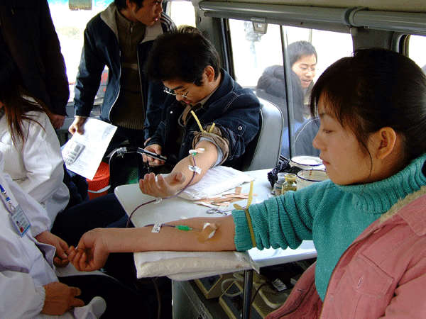 看着温暖的红色血液缓缓流入到血袋中去,同学们的脸上露出了灿烂的笑容,这是一种发自内心的,对生命、对健康的热爱,这是一种奉献的快乐,他们用自己的鲜血在大学部的校园里谱写了一曲暖人的冬日奉献曲,生动的展现了新华学子良好的精神风貌,正如一位女生所说:“当我看到自己鲜红的血液缓缓地流入血袋时,并不觉得痛,而是觉得光荣和自豪,通过这样的献血活动,让我们自己也感受到了人间真情的温暖!”