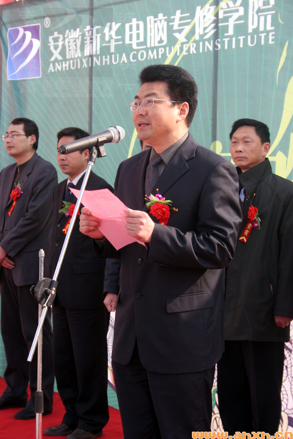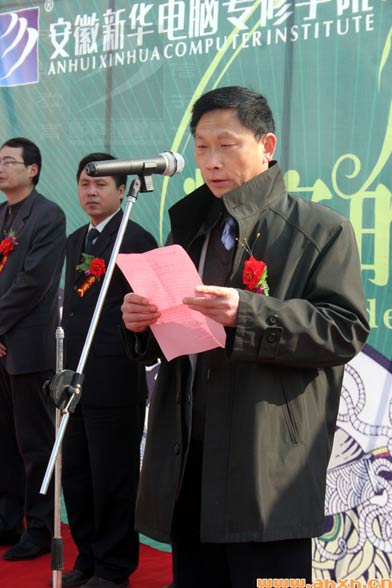 安徽省信息产业厅信息化推进处处长尹健、美国Adobe公司中国认证管理中心经理陈敬松、新华电脑教育集团副总经理、安徽新华电脑专修学院院长沙旭,以及常务副院长苏凯钧、副院长杨东风、熊振宏,教学总监何扬等领导出席了开幕式。