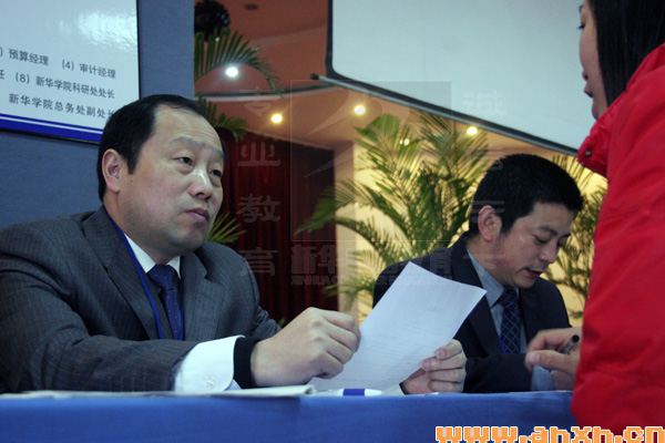 3月18日,新华集团2007年春季大型人才招聘会在新华电脑专修学院盛大召开。本次招聘面向管理、房产营销、工程技术、教师、文职以及后勤等50多个岗位,新华集团、新华教育集团以及所属单位新华房产、天一物业、安徽新华电脑专修学院、安徽新东方烹饪专修学院、安徽新华中专学校分别设立招聘展位。集团公司领导、副总经理王永凯等集团高层领导亲自出席并主持复试。从上午八点至目前,共吸引1200多名前来面试的各类人才参与角逐。