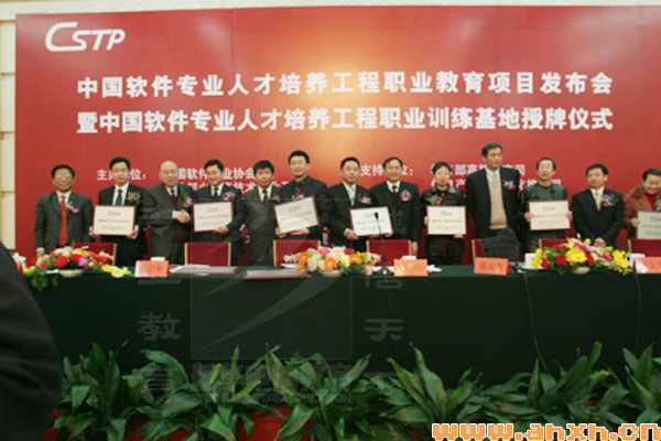 ☆ 2006年3月17日,由中国软件行业协会、科技部火炬中心和中国国际人才交流基金会联合主办的 “中国软件专业人才培养工程职业教育项目发布会暨中国软件专业人才培养工程职业训练基地授牌仪式”在北京人民大会堂隆重召开。新华电脑教育教育集团所属安徽、北京、南京、长沙、济南、河南六所院校被首批授予“中国软件专业人才培养工程职业训练基地”。