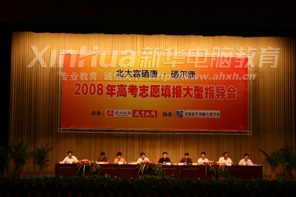 如何填报高考志愿一直是考生和家长最为关注的事情,为解决我省广大考生填报志愿的疑难困惑。6月28日上午,《合肥晚报》“教育视线”与安徽新华电脑专修学院在安徽大剧院联合举办了“2008年高考志愿填报大型指导会”,约1万余人参加了本次活动。