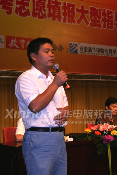 安徽新华电脑专修学院副院长李斌在在大会致辞中指出:填好志愿对于上满意的大学是非常重要的,希望广大考生及家长理性、慎重的对待。他还提醒大家,安徽新华电脑专修学院在《合肥晚报》“教育视线”开辟了“升学热线”栏目,邀请专家专项解答中高考及小升初等升学问题。最后,他表示:安徽新华电脑专修学院作为IT职业教育的领航者,会始终秉承“创造让学生尊重和满意的教育服务”的宗旨,本着“兴教报国”的理念,为广大考生提供更多的中高考服务,为社会培养更多的IT人才。