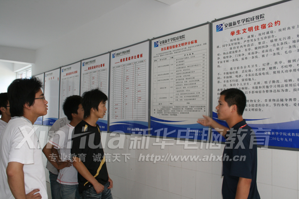 在参观校园前,学院组织同学们在365计划教育校区(长江西路)会议室观看了新华电脑教育专题片、文化艺术节视频和新华校歌。同学们对安徽新华电脑专修学院的校园文化建设有了进一步的了解,并对新华校歌大加赞赏,还不时地跟着学。