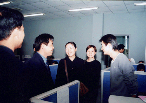 马不停蹄,顾不上休息,我们把考察的第一站确定在杭州最大的图片设计、处理公司——杭州嘉禾影像公司,得知新华电脑专修学院的领导和老师要来看望学生,嘉禾公司的金总亲自接待了我们,他的热情好客,打消了我们的种种顾虑,我们很快就全身心地溶入这个管理规范、技术国内领先的现代化影像公司中去。看着那价值一百多万的先进仪器,再看着通过我们学生的熟练操作,一张张精美的图片展现在大家的面前,同行的老师们情不自禁地发出阵阵赞叹。曾经教给他们的知识,现在已经被很好地运用到实际生活中去,自豪之情油然而生。金总把叫过来一个学生,竟然是张生,我还带过他们班的课呢。金总对他的器重溢于言表:“这是我们公司的技术主管,是新华电脑专修学院2002届电脑美术设计师班的学生,他是名非常优秀的员工,基本功扎实,学东西快,动手能力很强,人又勤奋用功,为公司创造了效益,这群从新华出来的员工所具备的品质是我们最为欣赏的,在杭州的数码影像界新华的毕业生非常受欢迎!下个月中旬,我们公司人力资源部计划到你们学校再招15名苹果专业的毕业生过来!”