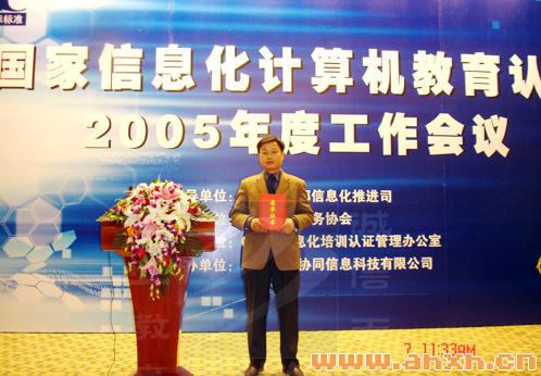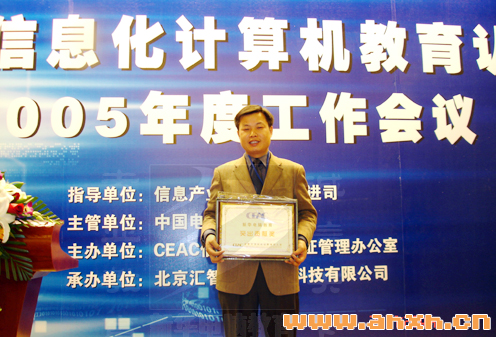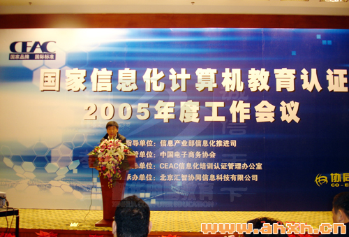 2006年1月7日,“国家信息化计算机教育认证(CEAC)2005年度全国工作会议暨全国培训机构业务研讨会”在北京隆重召开,中国电子商务协会理事长宋玲女士,信息产业部信息化推进司副司长洪京一先生,中国职工教育和职业培训协会副会长兼秘书长毕结礼先生,CEAC信息培训认证管理办公室执行主任张方,副主任曹红泼等领导出席了此次会议,作为CEAC优秀考试中心,安徽新华电脑专修学院考试中心主任陈映年应邀参加了此次盛会。湖南新华、山东新华、河南新华、贵州新华等多家认证培训机构代表也同时参加了此次会议,几十家新闻媒体对该会进行了全程报道。