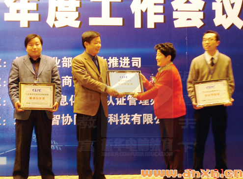 会上,中国电子商务协会理事长宋玲女士,国家信息产业部信息化推进司副司长洪京一先生先后致辞,中国职工教育和职业培训协会副会长兼秘书长毕结礼先生,CEAC信息培训认证管理办公室执行主任张方、副主任曹红泼等领导发表了热情洋溢的讲话,并从05年全国信息化电子商务的发展到今后几年电子商务发展的大趋势以及CEAC项目发展的状况和今后几年的规划进行了精彩而又独到的阐述,对与会代表今后工作的开展给予了极大的鼓舞与信心。安徽新华电脑专修学院考试中心主任陈映年代表新华教育集团作为获奖培训机构发言。他表示:作为中国IT教育十大影响力品牌,国家信息化教育全国示范基地的新华电脑专修学院一直受到社会各界的关注和支持,与国际著名厂商如微软、Adobe、苹果、Autodesk、SUN等有着深度合作,与CIW、ATA、NIT等考试认证机构、与印度国家信息技术学院、清华大学、上海交大、中国电子商务协会有着紧密的卓有成效的项目合作。大部分的项目考试认证量,都做到了全国第一。