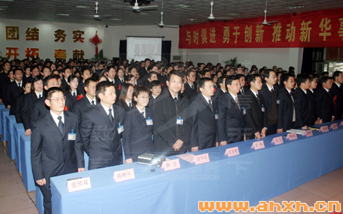 庄严的国歌拉开了大会的序幕。安徽新华电脑专修学院院长沙旭向大会作了主题为“紧抓机遇,加快发展,努力实现中国电脑教育第一品牌”的报告。报告指出,安徽新华电脑专修学院作为全国知名电脑教育机构,成立18年来,在“兴教报国”的神圣使命驱使下,坚持诚信办学、专业办学的思路,为社会培养了30多万实用型人才。截止05年12月,在校生人数已超过一万人,也是我国惟一超过万人的电脑职业教育院校。“系部整合”成功实施,成立6系3部23大专业,把高等教育完善的院系管理体制引入电脑职业教育,树立了电脑职业教育发展与改革的里程碑;“技能+学历”教育发展迅猛,05年“技能+学历”各专业招生旺盛,目前大专部在校生超过3000人规模,且参加全国成人高考录取率高达96%,为我省成人教育发展作出了突出贡献;3++国际软件工程师重装推出,为软件人才培养树立了新的标准,缓解了我省软件人才严重短缺的局面。