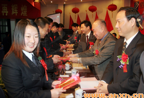 大会还对安徽新华电脑专修学院近50名先进工作者和3个先进集体进行了表彰。同时,安徽新华电脑专修学院还获得了新华集团“先进单位”称号,也是第四次获得该项荣誉。集团公司领导向沙旭院长授牌。
