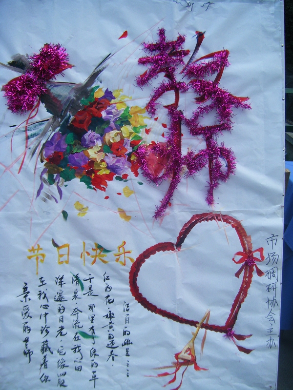 此外,市场调研协会还在摆起展台,向同学们收集给老师的祝福语,不到10分钟,展台前十几米长的展板上就被同学们贴满了各种祝福语。“春蚕到死丝方尽,蜡炬成灰泪始干。”“采得百花成蜜后,为谁辛苦为谁甜。”“老师,我们爱您”…… 同学们把对老师的感激与祝福简短地写来展板上,没有华丽的辞藻,只有一颗心最真挚的祝福。