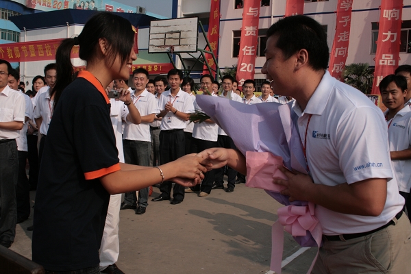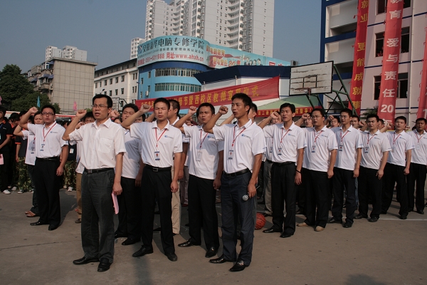 最后,新华365计划教育校区的全体教职员工面对国旗,面对全体同学,在郑成鲲主任的带领下庄严宣誓:忠于人民的教育事业,履行教师的神圣职责,贯彻国家的教育方针,全面实施素质教育,……做学生良师益友,铸教师高尚人格,为中华民族的伟大复兴,为人类社会的文明进步,献出全部力量!