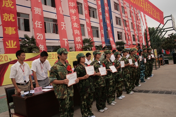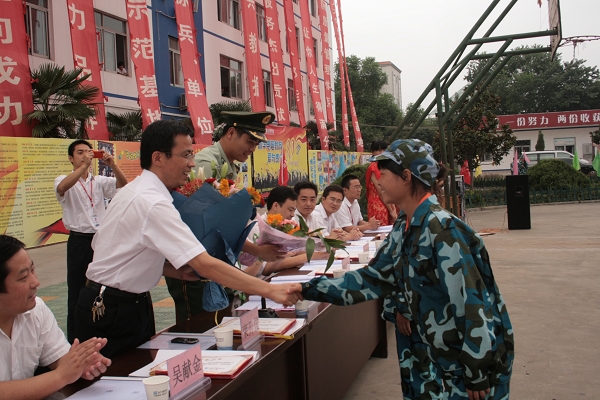 安徽新华电脑专修学院束开俊副院长在大会就同学们在十天军训中的表现给予高度肯定。他说,军训十天中,同学们丢弃了娇气,塑造了刚毅;抹去了懦弱,锤炼了坚强;对于同学们来说,这是你们一生中难得的一份财富,希望你们在今后的学习生活中,发扬军训“劳其身、练其骨、锻其志”的精神,努力学习科学文化知识,掌握扎实的操作技能,圆满完成学业,创造精彩辉煌的人生。