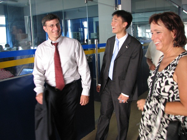 下午两点左右,CompTIA美国访问团来到安徽新华电脑专修学院新校区,对新校区的校园设施、硬件设备等进行了参观和考察。一路上,Bryan Kainrath先生、Kyle Gingrich女士赞不绝口,对于新华的先进教学设施尤其赞赏。