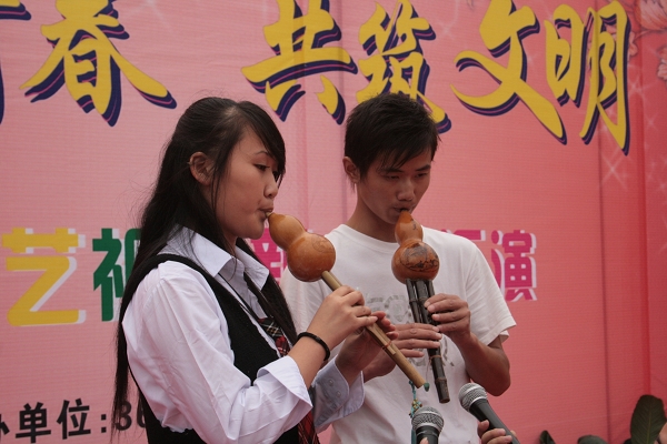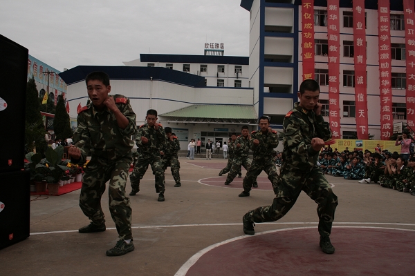 晚会在激情热烈的教官擒敌拳表演中拉开序幕。教官的表演打出了青年的热情,激起了同学们的共鸣,钢筋铁骨的体格,站如松,坐如钟的气魄,激励着同学们精忠报国的赤子情怀。《大中国》、《军中绿花》、《爱我还是他》、《我和你》等歌曲时而铿锵有力,时而婉转动听,使现场气氛一潮高过一潮。唱出了新华人对祖国的热爱,对家乡的思念以及对美好明天的追求。由陈方圆、施灵敏等同学带来的‘天籁之音’乐器联奏让人如痴如醉。其深厚的功底、抑扬顿挫的演奏技巧令人钦佩。由E轩文学社的同学们自编、自导、自演小品《如此招聘》用诙谐的语言反映了社会现实,让同学们在欣赏节目的同时反思了竞争的激烈,更要努力学习。