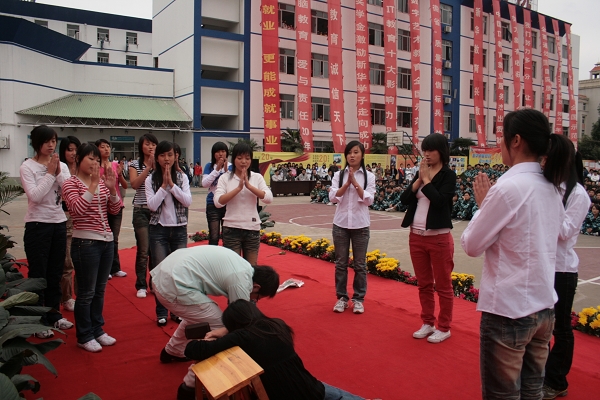 参加演出的新华365国家紧缺型人才培养计划0716班的潘秀慧同学说:“在朗诵时,我非常激动。这是一首气势磅礴的诗,可以激起我们每个人的爱国情怀。希望‘新华·皖川青年爱心班’的同学忘掉苦难,在这里实现人生的理想”。