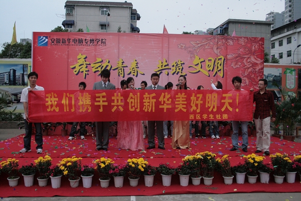 喜迎新生,共唱华章,心心相系,悦缘金秋。9月26日下午,安徽新华电脑专修学院《舞动青春共筑文明》E声艺视迎新晚会在365计划教育西校区广场精彩上演,学院领导、学区负责人等亲临现场,全体08级新生、部分师生代表及各社团成员观看了演出。