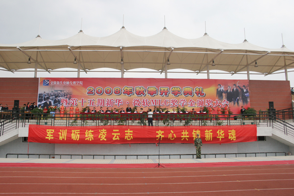 9月28日,安徽新华电脑专修学院2008年秋季新生开学典礼暨第十五期新华•MLC奖学金颁奖大会在学院TC精英校区体育场隆重举行。省市领导、新华教育集团领导、合作单位领导以及兄弟院校和学院领导出席了本次开学典礼并为获奖学子颁奖。