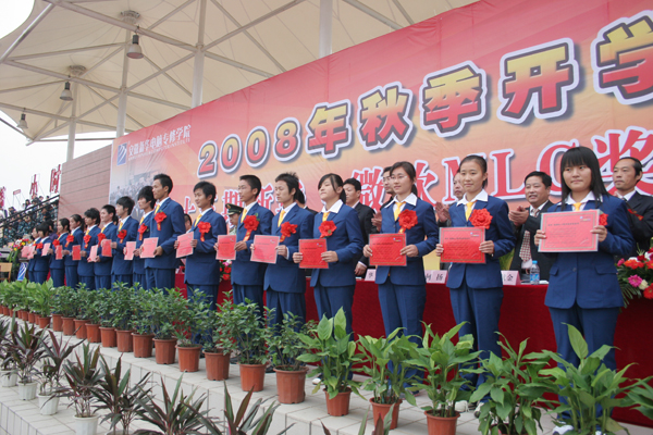 此外,在本次开学典礼上,08年秋季新生军训中表现优异的个人、寝室、班级也分别被授予“优秀标兵”、“优秀班级”、“文明寝室”称号。