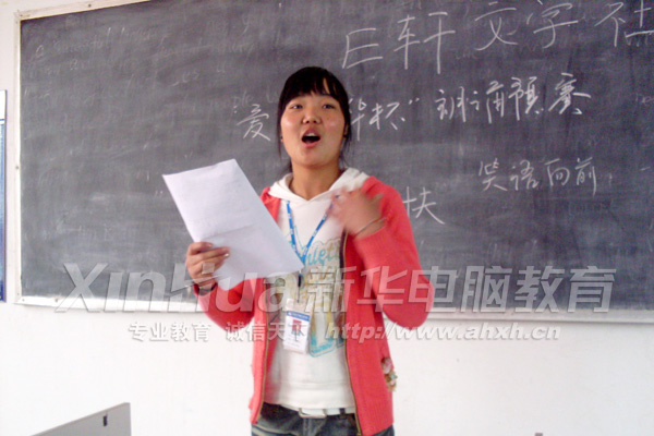 为响应学院倡导的“爱国、爱家、爱校”思想,E轩文学社策划组织了“爱在新华”朗诵大赛。此次大赛以“爱”为主题,可自创也可朗诵经典名句。经过E轩文学社前期的海报、展板、广播等宣传,吸引了近百名学子报名参加。