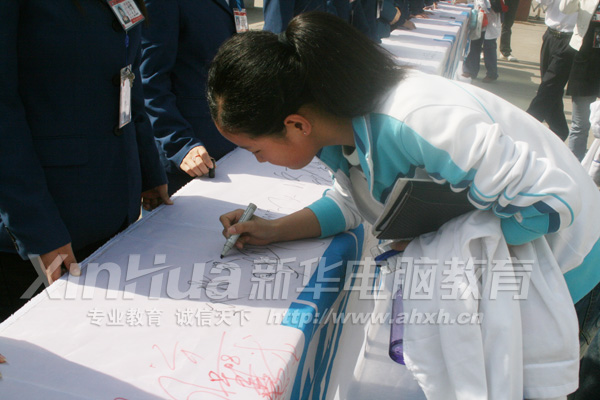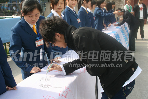为贯彻团中央、教育部、文化部、国务院新闻部、全国青联、全国少工委、中国青少年网络协会联合颁布的《全国青少年网络文明公约》的文件精神,增强全院学子自觉抵制网上不良信息的意识。11月4日,安徽新华电脑专修学院365计划教育西区电脑设计学生会举行了“拒绝网毒 文明上网”大型签名活动。