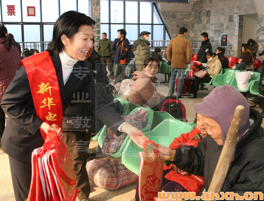 2005年1月27日,安徽新华电脑专修学院“故乡亲,新华情”帮扶队来到合肥火车站和合肥汽车站,他们牺牲自己的休息时间,去帮助那些急切想和家人团聚的游子和在外找寻生活的打工者,还向返乡的亲人们赠送了大米、台历、年画和手提带等礼物,将节日的祝福,浓浓的情谊和旅途的便捷带给广大旅客。