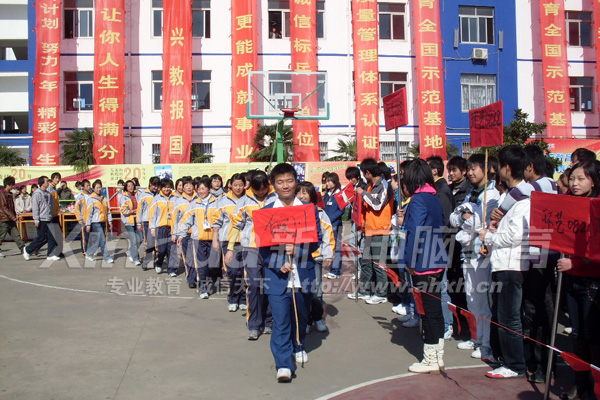 运动会开始后,25个班级代表队在大家的欢呼声中列队进入赛场。首先入场的是“新华•皖川青年爱心班”的同学们,接下来各组参赛人员也都井然有序的进入会场。参赛人员个个神采飞扬,信心满怀,这也为后续赛事高潮迭起、精彩不断打下了基础。
