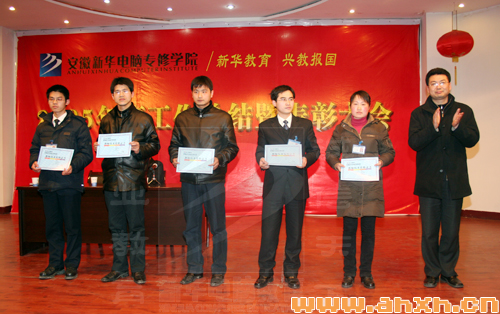 安徽新华电脑专修学院副院长苏凯钧亲自为获奖教师颁奖