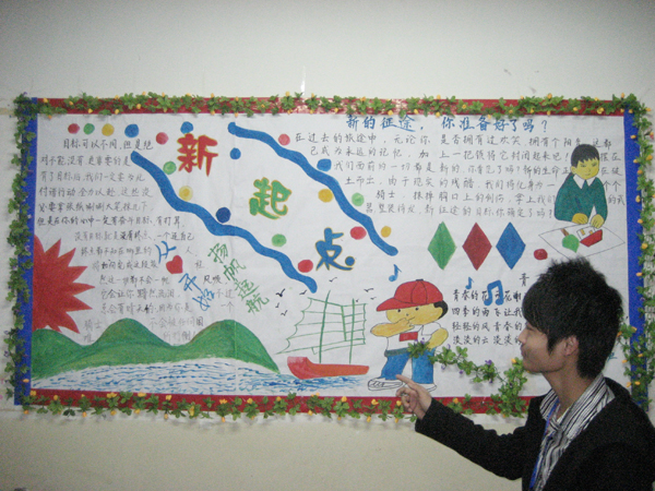 电脑基础0901班的同学告诉笔者,在新的一年里,我们来到了安徽新华电脑学院北校区,成为了本校区的第一个班级——基础0901班。我们很激动,我们要为其他新同学做好榜样。现在,对于我们来说一切都是新的,所以我们这期板报的主题就是“新起点”。它不仅代表我们班也代表所有的新生们,希望大家能在这条新的道路上不断实现地向自己的理想迈进。