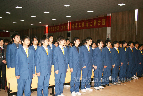 据悉,本次共有461名安徽新华电脑专修学院TC新校区学子通过自己的努力和“技能+学历服务”人才培养模式,成功被安徽财经大学录取,将进行为期两年的高等教育。09级新生代表王龙同学在会上激动地说:“是新华电脑学院让高考失利的我们重新获得了学习的机会,而今天又是新华的好政策让我们取得了学历学习资格。是新华让我们学会了挑战自我,突破自我,用我们的智慧、勇气和一颗颗永不服输的心,从稚嫩走向成熟与成功。在今后的学习中,我们一定会认真学习、刻苦拼搏,绝不辜负新华领导和安财大领导的期望”。他还希望入校新生能够努力学习,早日实现自己的理想。