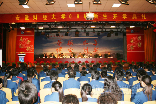 安徽财经大学成教院院长李志远、安徽财经大学合肥教学点校长胡伟、安徽新华电脑专修学院院长张明等领导出席了仪式。被安徽财经大学录取的学子、TC新校区09级新生及部分师生代表参加了典礼。