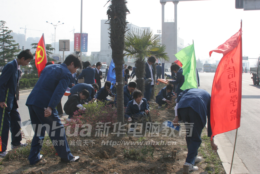 4月10日一大早,新华青年志愿者统一着装,在老师和学生干部的带领下,他们高举学院、共青团旗旗帜,拿着扫把、水盆、抹布、环保袋迈着整齐的步伐出发了。他们在学院附近路段、街道,挥洒着自己的汗水,义务的奉献出自己的力量,为第四届中博会的召开奏响一曲和谐之音。