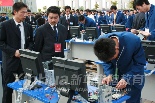 扎实的实践能力和良好的职业素质是新华学子备受企业“青睐”的重要原因。安徽新华电脑专修学院为培养符合企业需要IT人才多管齐下,图为新华校园数字文化节计算机安装调试大赛现场