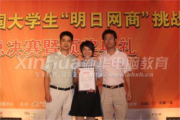 前言:7月26日,历时四个月的第二届全国大学生“明日网商”挑战赛在杭州完美落幕。安徽新华电脑专修学院喜获六项大奖,汪云娟同学更是力挫强敌,从北京大学、四川大学、哈尔滨工业大学等2032所高校的112256名大学生中脱颖而出,喜获铜奖,还获得“校园十佳CEO”、“生活服务网络经纪人”称号。