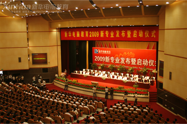 新华电脑教育2009新专业发布暨启动仪式5月隆重推出,中央电视台、《光明日报》、新华网、新浪网、搜狐网等数十家知名媒体齐聚合肥并纷纷给予报道。图为仪式现场。