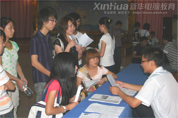 8月21日上午,安徽新华电脑专修学院校园招聘会在多功能厅火爆举行。 据了解,本次专场招聘会吸引了合肥万豪装饰、合肥轩辰雅筑装饰、合肥爱克装饰、安徽六道装饰、合肥好来居装饰、合肥一浪网络、武汉大政科技等15家公司前来招聘。岗位以实习设计师、平面设计、三维设计、电子商务为主。此次招聘会提供近200多个岗位。