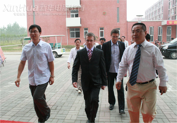 2009年9月17日上午9时,国际知名IT软件巨头美国Autodesk公司访问团Richard Lane先生、Vincent Chong先生、Hans Hirschi先生、Cathy Chang女士、Philip Jiang先生一行和中国授权管理中心北京万华创立数码公司副总经理邢长武先生来到安徽新华电脑专修学院,就美国Autodesk公司与安徽新华电脑专修学院的深化合作进行洽谈。