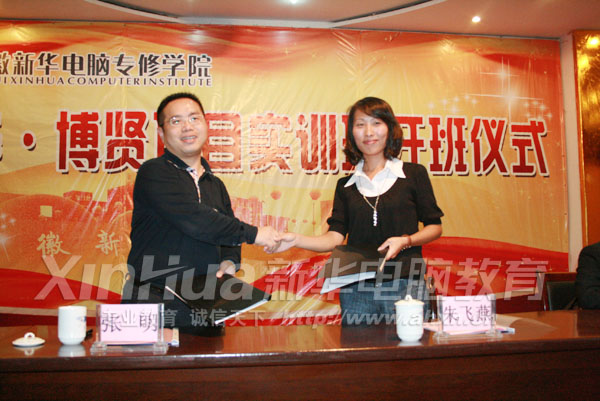各种“项目实训班”、“定向就业班”让全体学子轻松掌握精湛IT技能。图为“安徽新华—南京博贤项目实训班” 协议签订现场