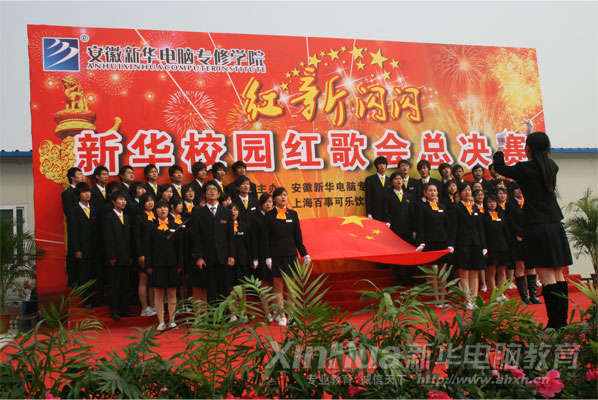 10月31日,安徽新华电脑专修学院职教城新校区内彩旗招展,歌声嘹亮,“红‘新’闪闪”红歌会总决赛在此成功举行。大家欢聚一堂共庆祖国60华诞,贺新华部分学子乔迁职教城新校区。