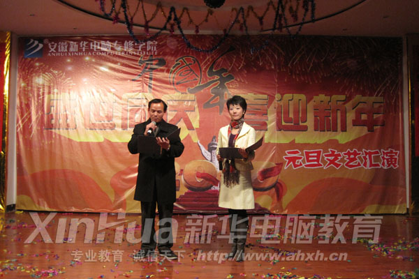 晚会现场,灯火辉煌,火红的中国结,洋溢出节日的气氛。晚会在TC西校区的多姿多彩社团带来的开场舞《红遍全球》中拉开帷幕,这将预示着安徽新华电脑专修学院在新的一年里越来越红,越来越好。