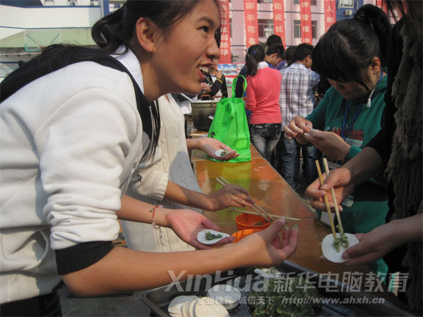 2010年11月6日,安徽新华电脑专修学院校园通讯社、电子商务学生会、E轩文学社在365西校区操场举行“三社联谊之包饺子”活动。本次活动以“提高大家动手能力,加强团队协作精神,增强各社团沟通配合能力”为目的,进一步提高三社成员信息传达能力和工作效率,使得全体社员在今后的工作中能够更好地发挥自身作用,塑造自身价值。活动初始,在购买完包饺子所需材料后,由各社团社长为大家讲解活动流程及意义并调动全场气氛,随后在场各位同学便大展身手。