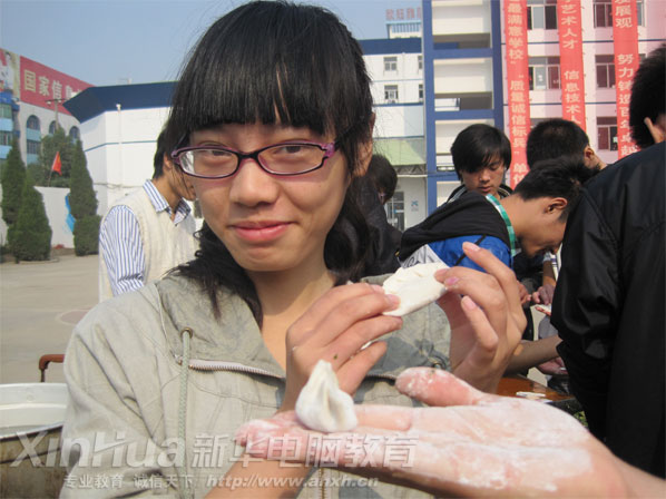经历了择菜、洗菜、切菜、等众多环节后,大家开始调馅。参加包饺子活动的成员来自大江南北,为了照顾大家的口味,则选择了大众化的口味,白菜猪肉馅。调馅工作完毕后,活动进入最精彩、最难忘、最激动人心的环节——包饺子。大家都充分发挥想象力,积极动手制作自己心中最理想的饺子。随着技术的娴熟,饺子的花样也越来越多。有麻花型、葵花型还有包子型,包饺子成了创意大赛,每位成员都绞尽脑汁想要一包成名,使包饺子现场处处洋溢着欢声笑语。