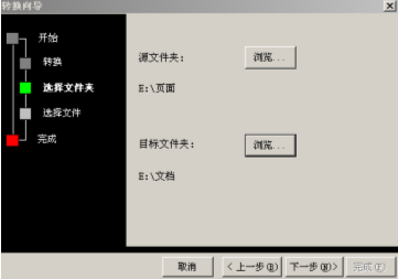 如我们选择“将其他文件转换为Word文档格式”,单击“下一步”,通过“源文件夹”的“浏览”按钮,选定存放源文件的文件夹,再通过“目标文件夹”的“浏览”按钮,确定转换后