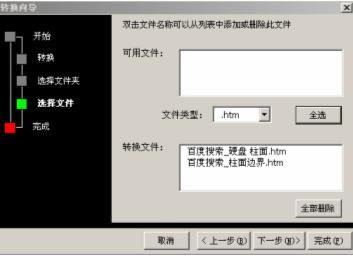 单击“下一步”,出现窗口,在“文件类型”中选“*.*”,单击“全选”按钮选中源文件夹中所有要转换的文件,再单击“下一步”。