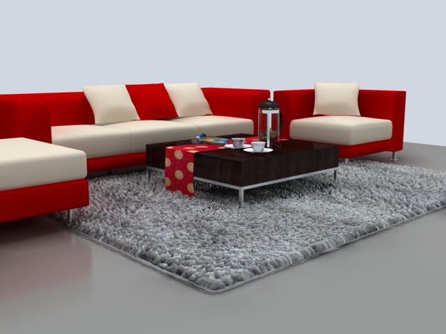 在室内效果图表现中,经常需要模拟各种各样的毛茸茸的地毯效果,大家的做法也不尽相同。有用3dsmax自带的Displacment置换贴图配合Bump凹凸贴图虚实结合产生毛毯效果的,也有用VRay渲染器中自带的VRayFur(毛发效果)来表现的,这里我们来介绍一下利用VRay渲染器中自带的VRayDisplacementMod修改器来制作真实的毛毯效果,它速度较快,效果也不错,是我们表现的一种优秀手法。