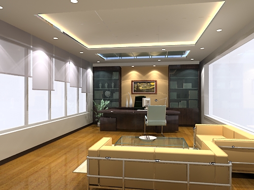 打开一个会议室的原始场景,在这个场景中我已经设置好了材质,由于是利用Radiosity来完成,大部分材质用的都是Standard标准材质和Architectural建筑材质。