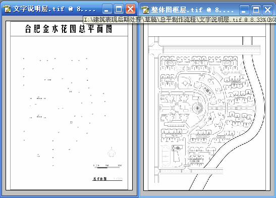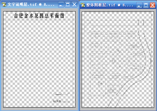 一、启动PhotoShop软件,打开整体图框层.TIF和文字说明层.TIF。如图01所示。