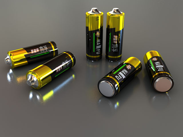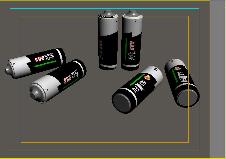 而遮罩的设置只须直接将遮罩图贴入通道就可以了,这里就不说明了。对场景中的所有电池赋予所设定的材质,场景显示效果如图22-9所示。如果你设定的效果与图示不一样,只需要对电池的2号选区施加一个UVW Map贴图坐标修改器就可以了,具体参数请大家自己独立完成。
